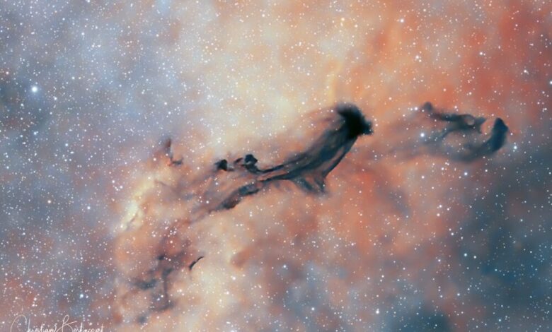 به گزارش ایسنا، کریستین برتینکورت، عکاس نجومی که این تصویر خیرهکننده از بارنارد ۹۳ (B93) را ثبت کرده است، آن را «یک روح در کهکشان راه شیری» توصیف میکند. نود و سومین ورودی در کاتالوگ سحابیهای تاریک بارنارد، B93 است که در ابر ستارهای کوچک قوس (مسیه ۲۴) قرار دارد، جایی که تاریکی آن در تضاد کامل با ستارگان درخشان و گاز در پسزمینه است.